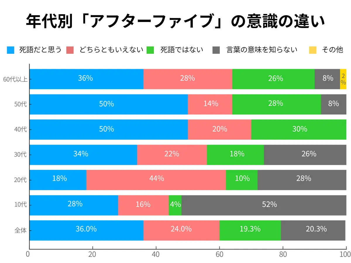 「アフターファイブ」を死語と思っているか、世代別の意識の違いを考察します。