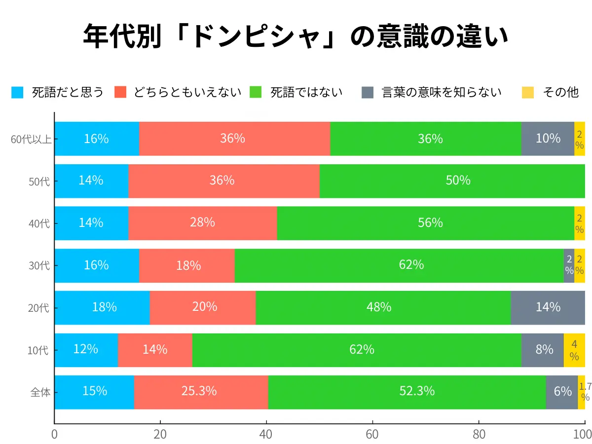 「ドンピシャ」を死語と思っているか、世代別の意識の違いを考察します。