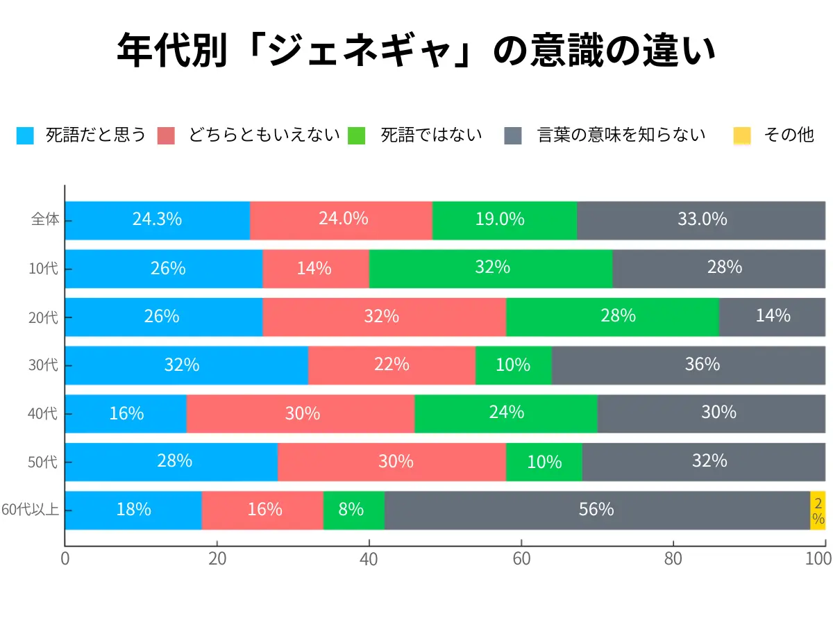 「ジェネギャ」を死語と思っているか、世代別の意識の違いを考察します。