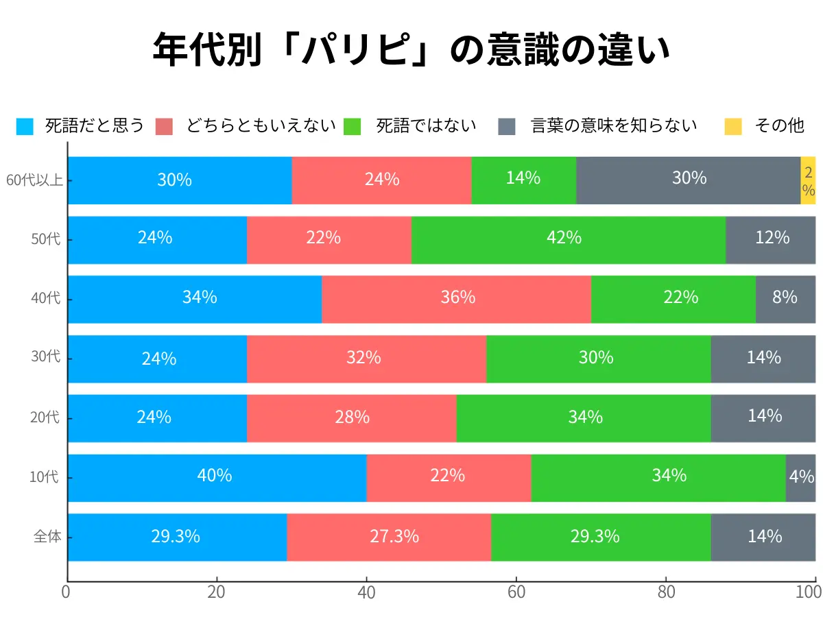 「パリピ」を死語と思っているか、世代別の意識の違いを考察します。