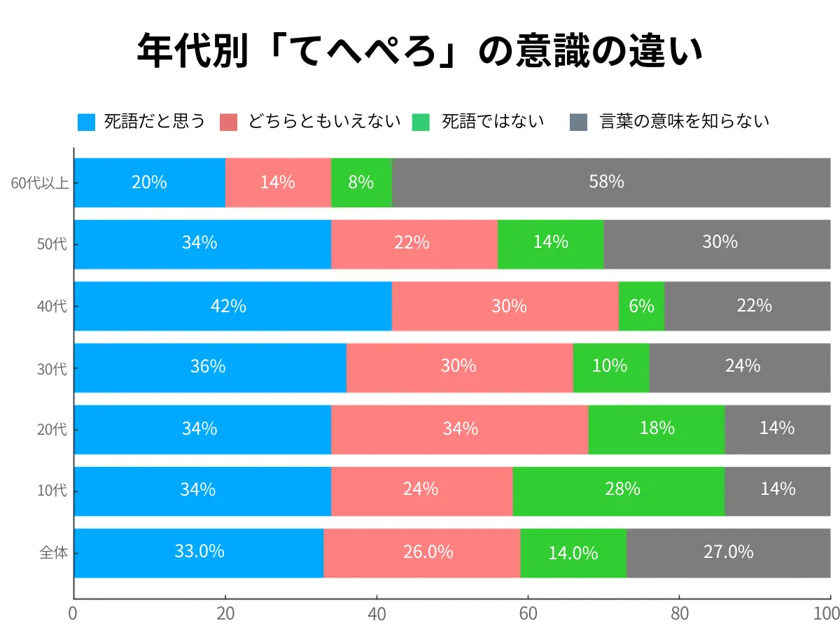 「てへぺろ」を死語と思っているか、世代別の意識の違いを考察します。